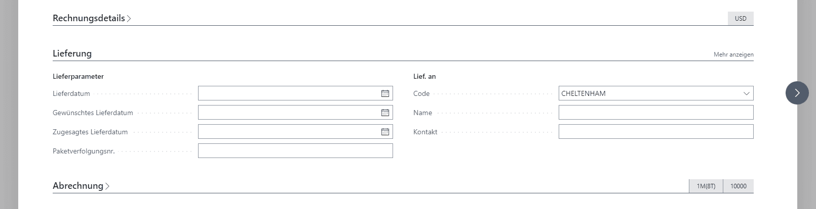 • Lieferbedingung: Bedingungen zur Lieferung zum Beleg. Relation zu den Lieferbdingungen in Business Central.